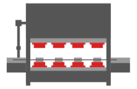 1台の搬送機構付を持ったプレスに独立した金型を複数搭載していることから、短時間で多くの生産を可能にします。物理的な問題で対象製品が小型のものが多いですが、中には大きなトランスファー型プレス金型もあります。